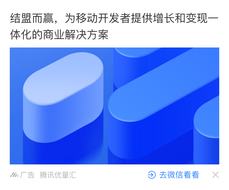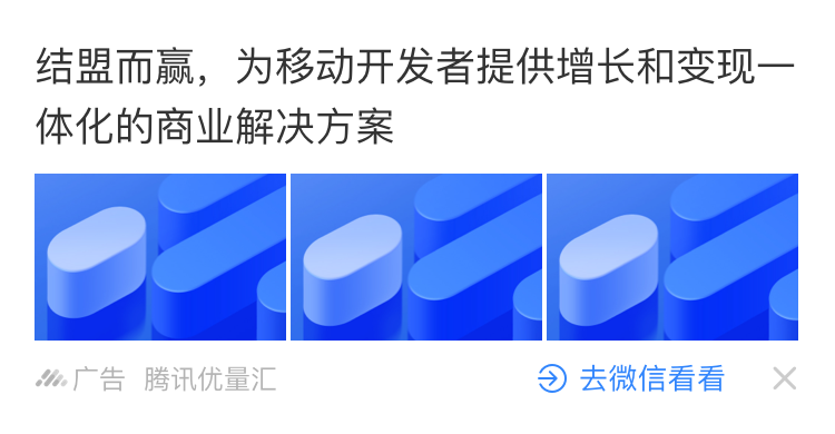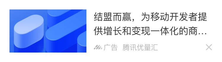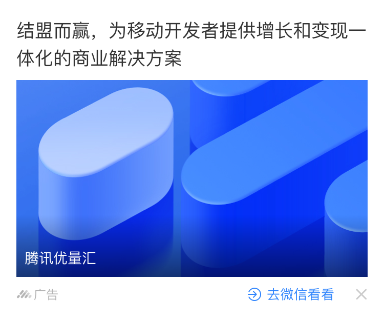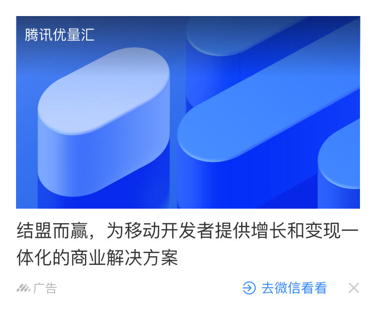 信息流广告/详情页插入广告/视频贴片/沉浸式视频流广告,都可使用优量汇提供的接入文档进行广告接入