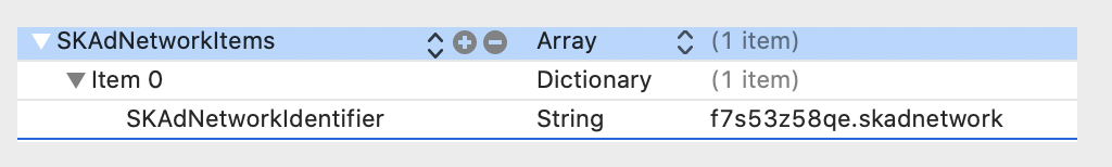 将 AdNetwork ID 写到 plist 文件中, 详见 https://developer.apple.com/documentation/storekit/skadnetwork/configuring_the_participating_apps