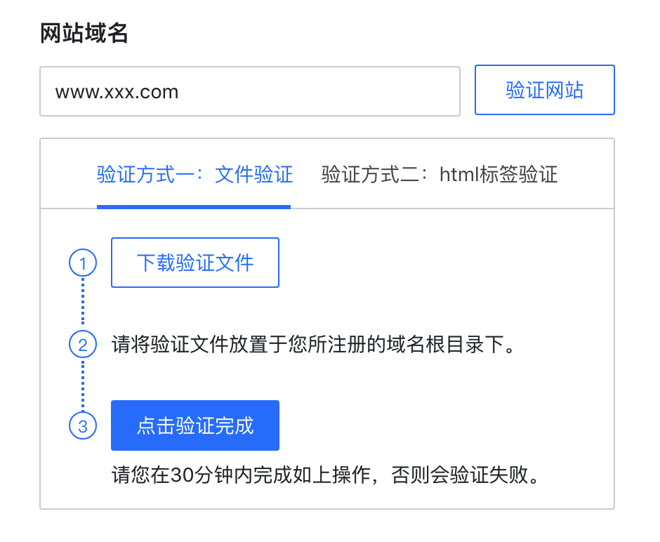 - 将验证文件放置于您所注册的域名根目录下进行校验